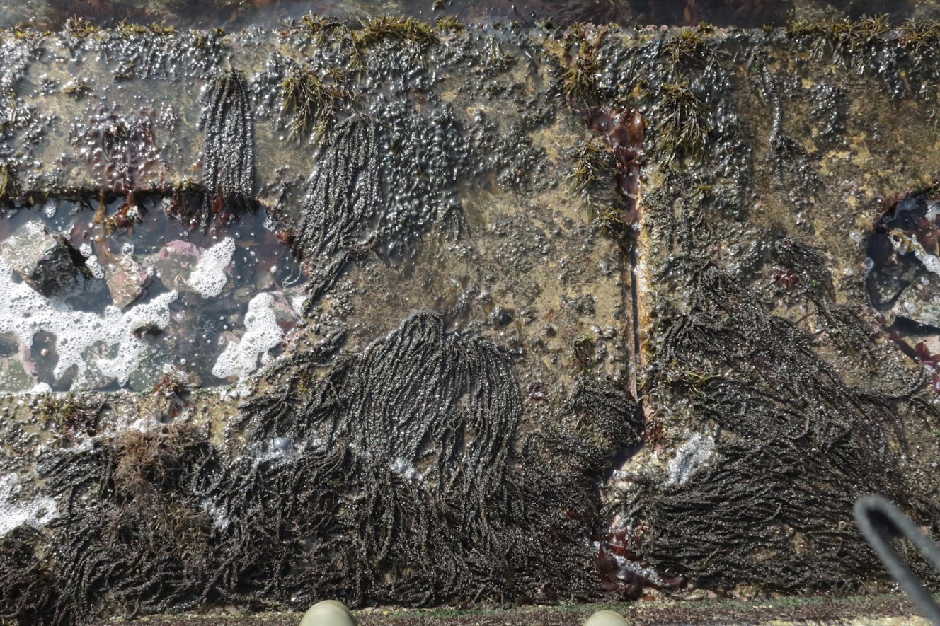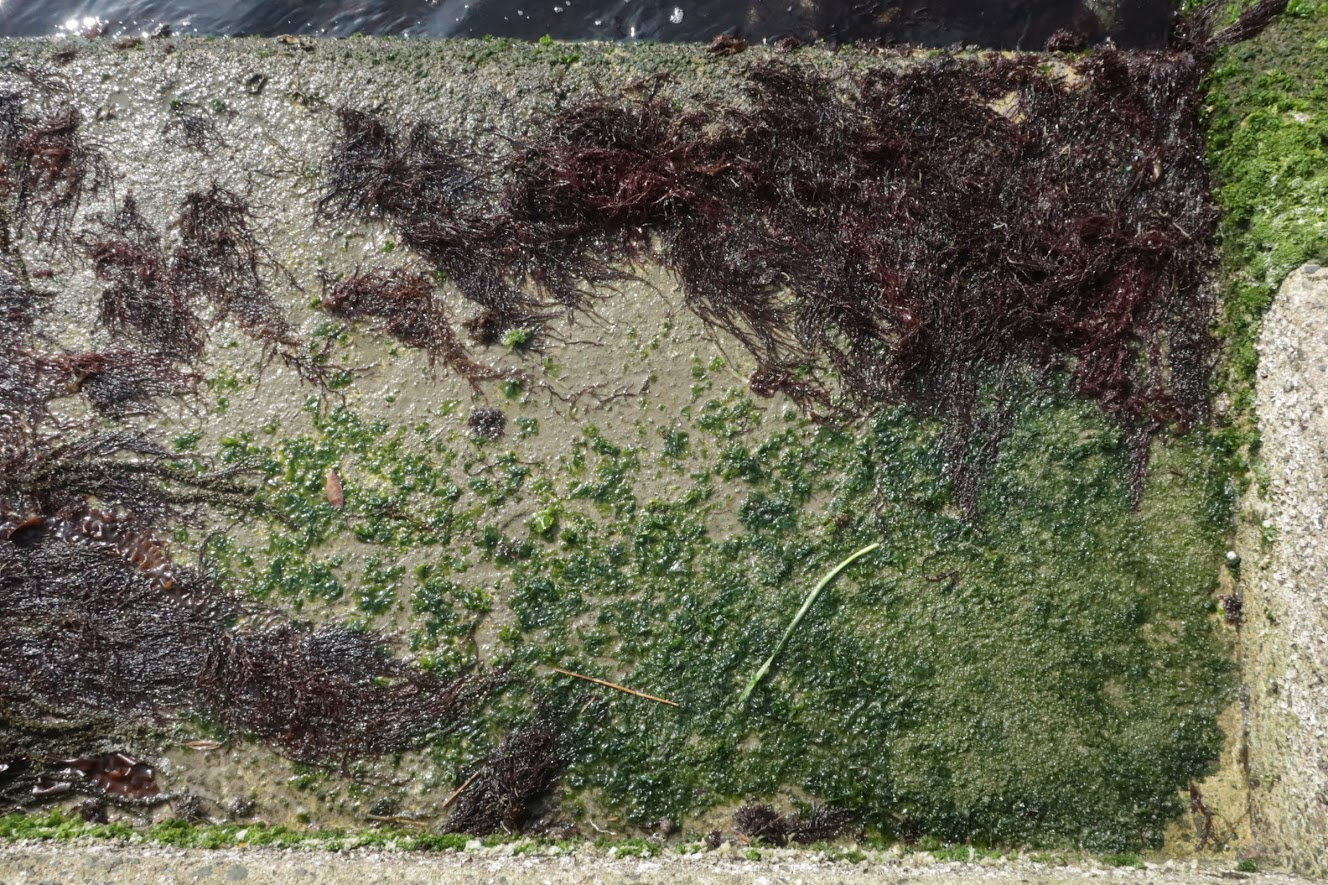 波がよく当たる場所、長い時間水に浸かる場所、空気にさらされる時間が長い場所など、それぞれの環境に応じて見られる海藻が異なります。